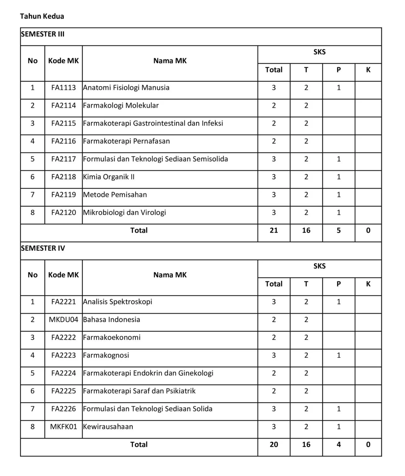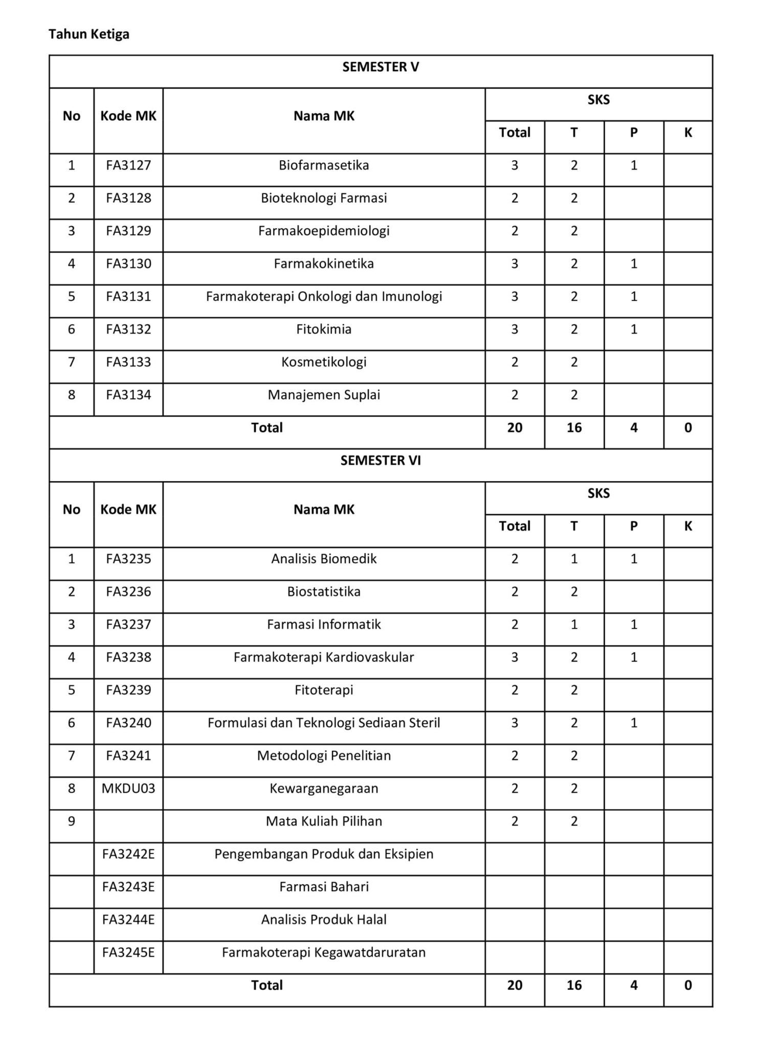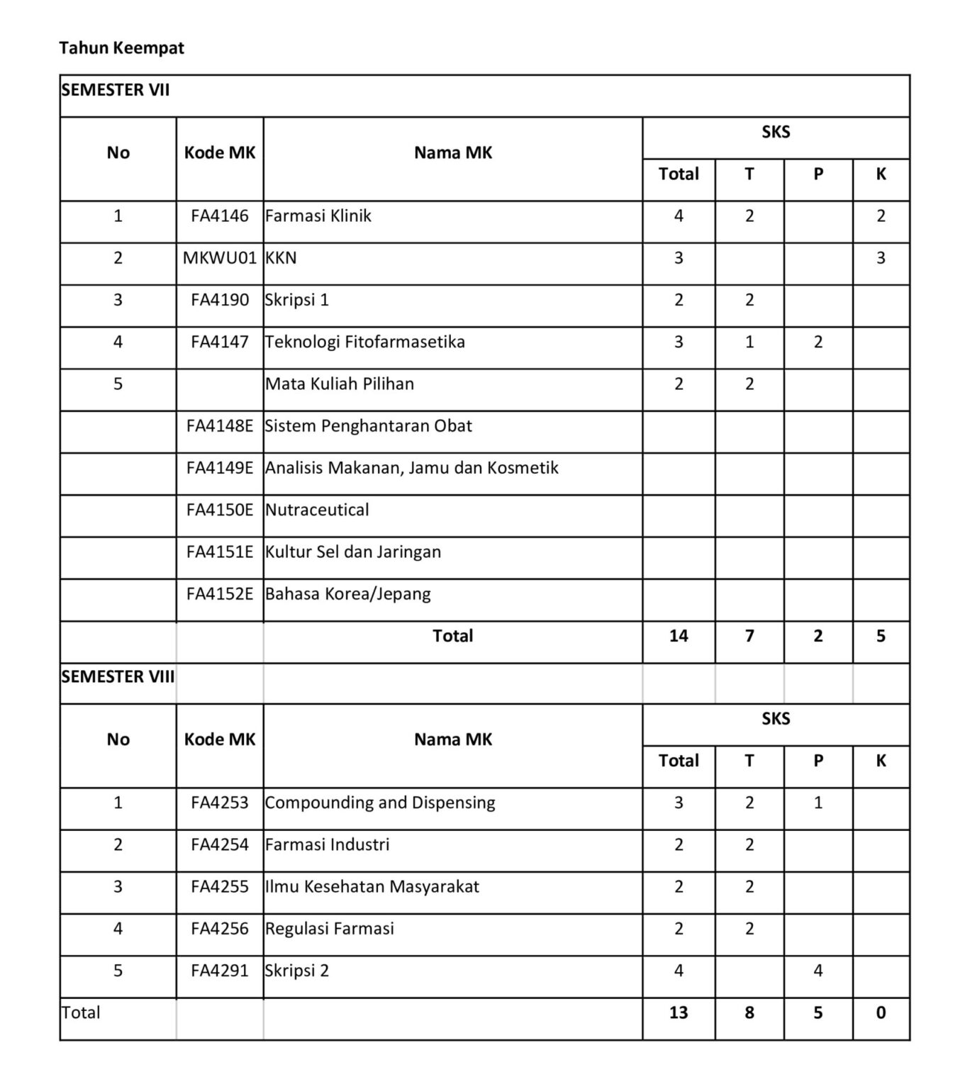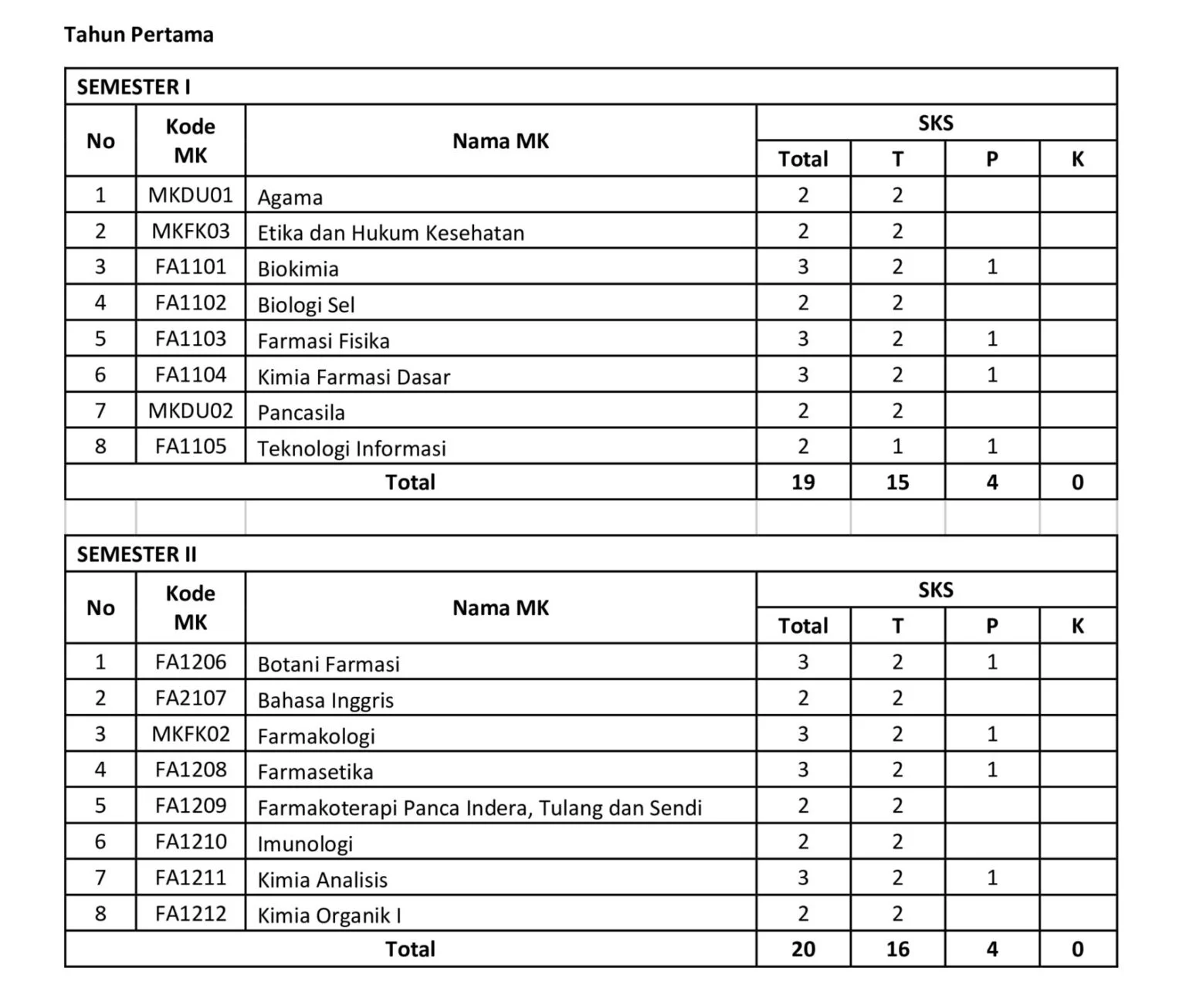 STRUKTUR MATA KULIAH PROGRAM STUDI S1 FARMASI